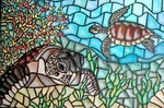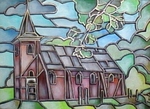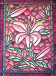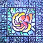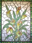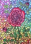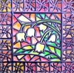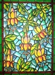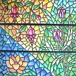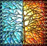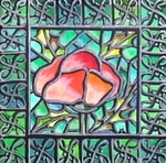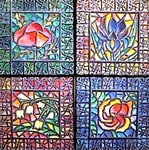 Schilderijen gemaakt met gemengde technieken om het effect van glas in lood te imiteren.