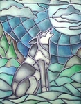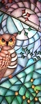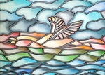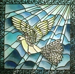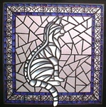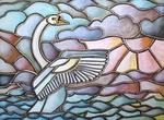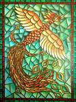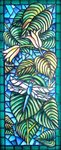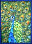2015Een kleurrijke pauw, geschilderd in glas in lood stijl.