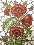 2013Klaprozen op zilveren achtergrond. Er omheen geschilderd zit nog een zwart met rode lijst.